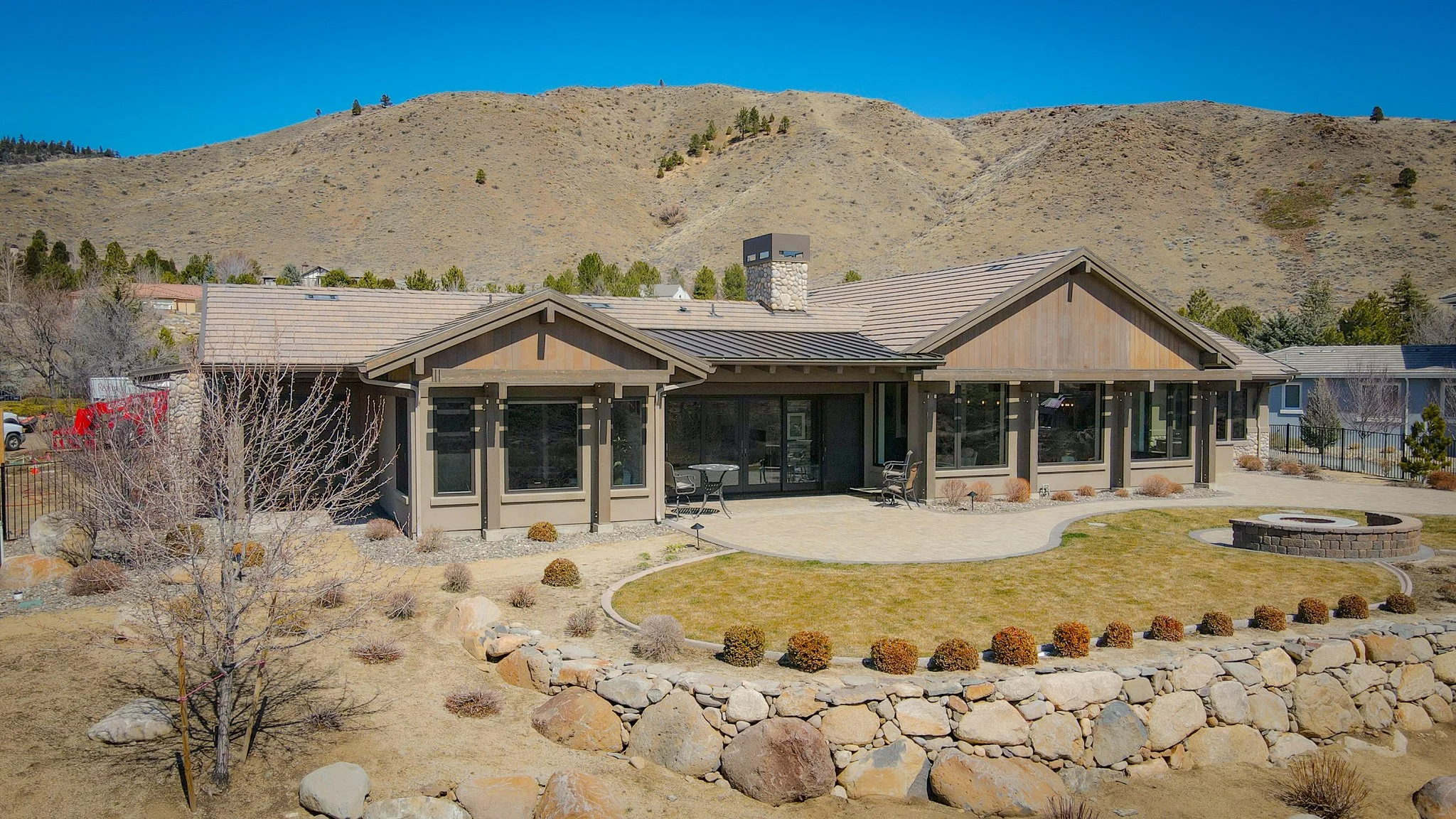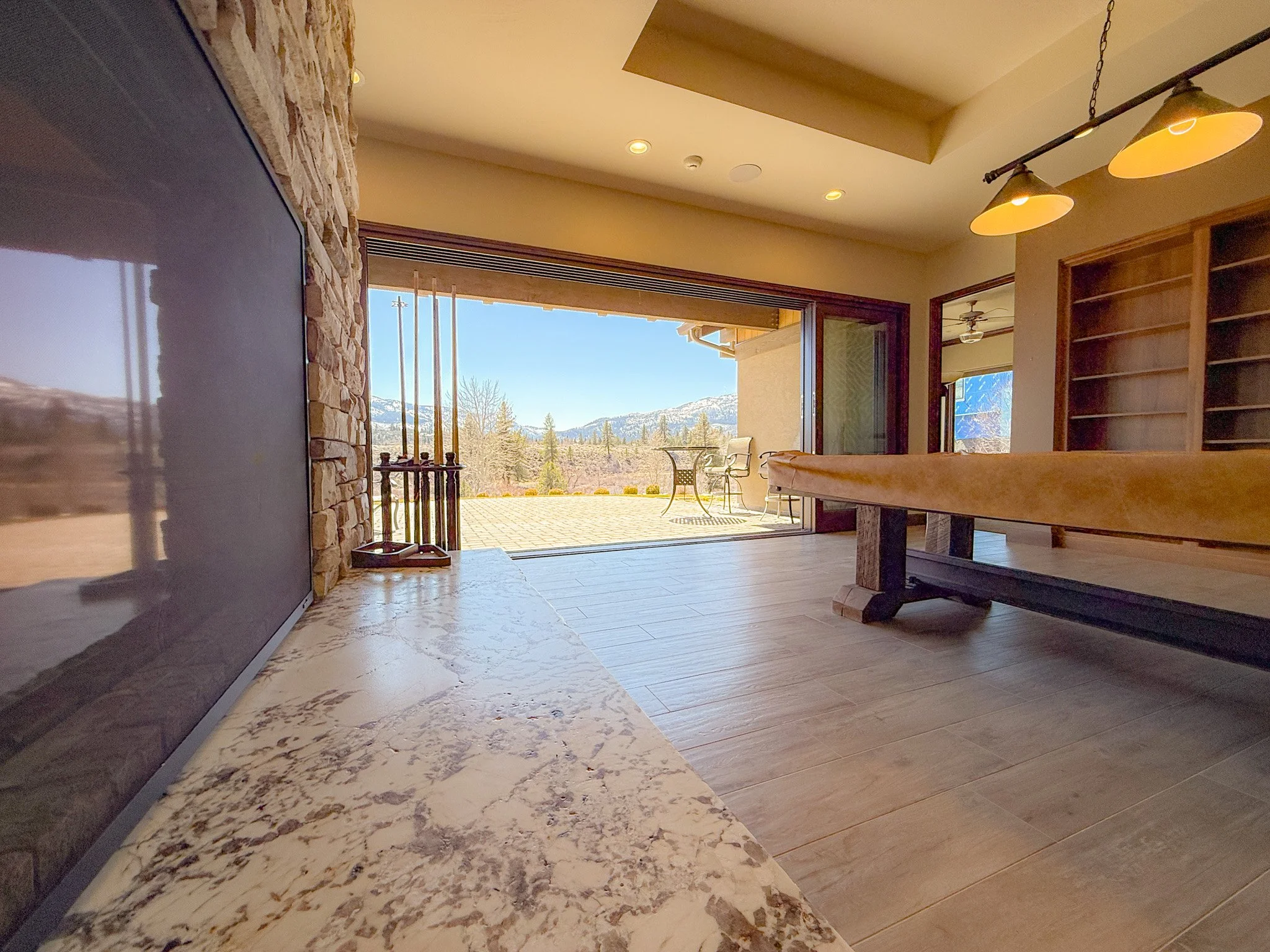 This stunning residence boasts an expansive 4,448 square feet with 3 bedrooms, 2 1/2 baths, and 6 car garage (2 separate 3 car configuration) designed with sophistication and comfort in mind, perfectly positioned to capture breathtaking, panoramic views of the majestic Truckee River and Sierra Nevadas through massive multi-slide patio doors.