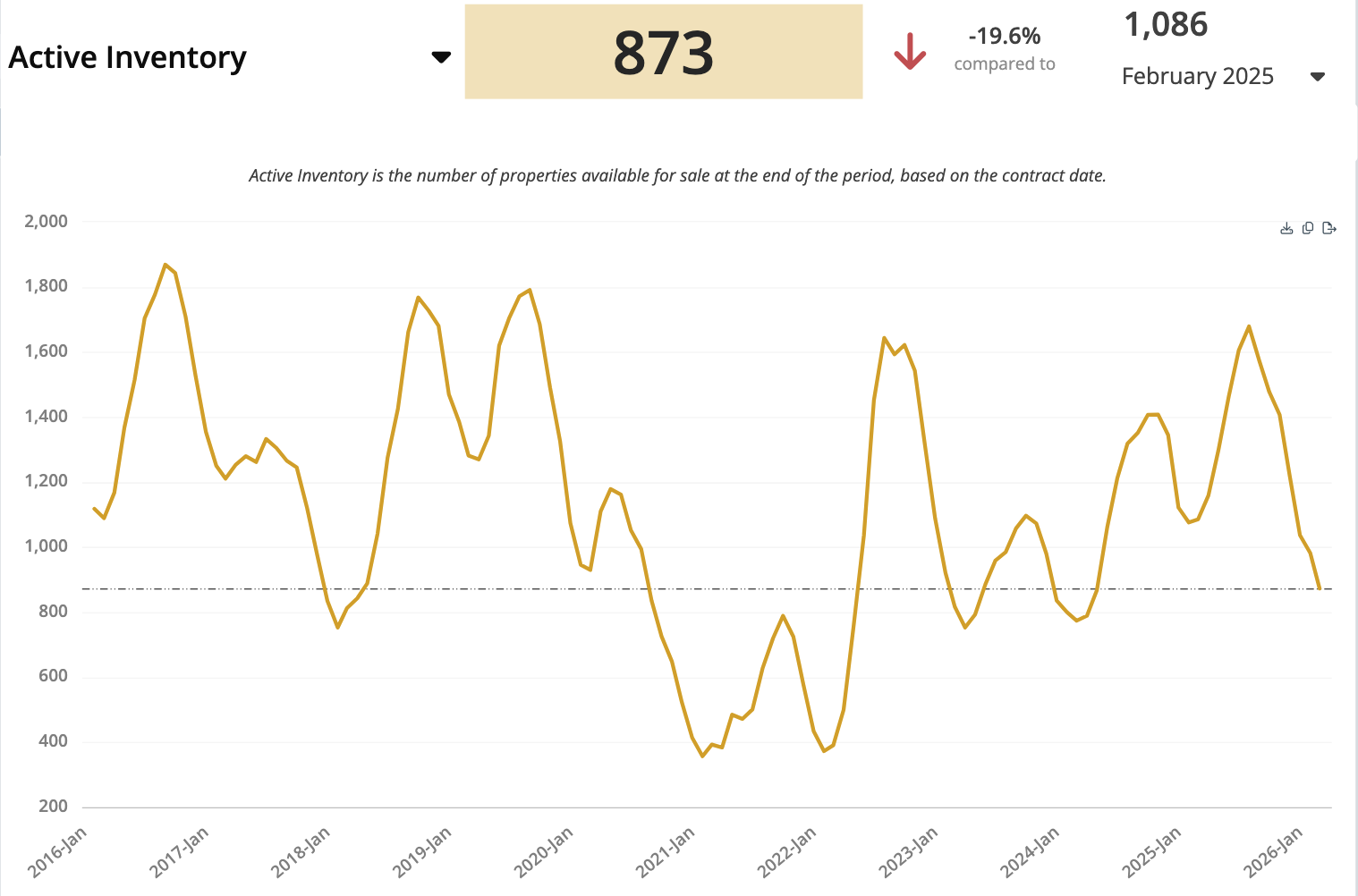 The data reflects activity through February 2026, compared year-over-year with February 2025 to give a true apples-to-apples comparison.